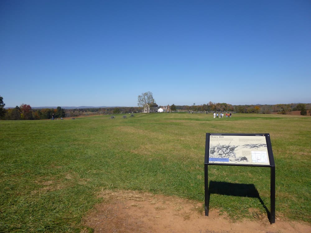 In command of the Union army, General Irvin McDowell’s plan was to mount a diversionary attack across the stone bridge at the centre whilst the bulk of his troops forded the river upstream to attack the Confederate weaker left flank. Unfortunately, delays in mobilising the flanking attack gave the Confederates ample time to reinforce the high ground protecting their flank, Henry House Hill.
