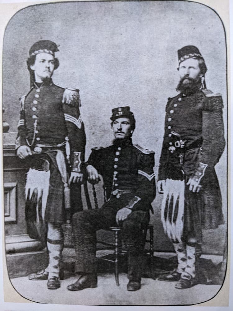 This particular incarnation of the 79th were founded in 1859, as a unit within the New York State Militia composed largely of Scottish emigrants, under the auspices of the Caledonian Society of New York and with the encouragement of the British Consul at the time, a Captain David Cameron. Cameron had been an officer in the 79th Cameron Highlanders and so the new unit not only adopted their Scottish brethren’s regimental number but also full highland parade dress and Cameron tartan trews fatigues.